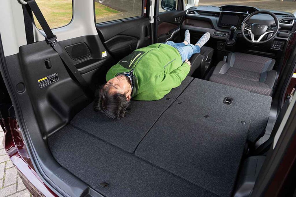 実際、スズキの軽自動車やトヨタのアクアなど、サイズは小さいものの、リアシートを倒すことでフラットな寝床空間が確保できるモデルが増えています。
